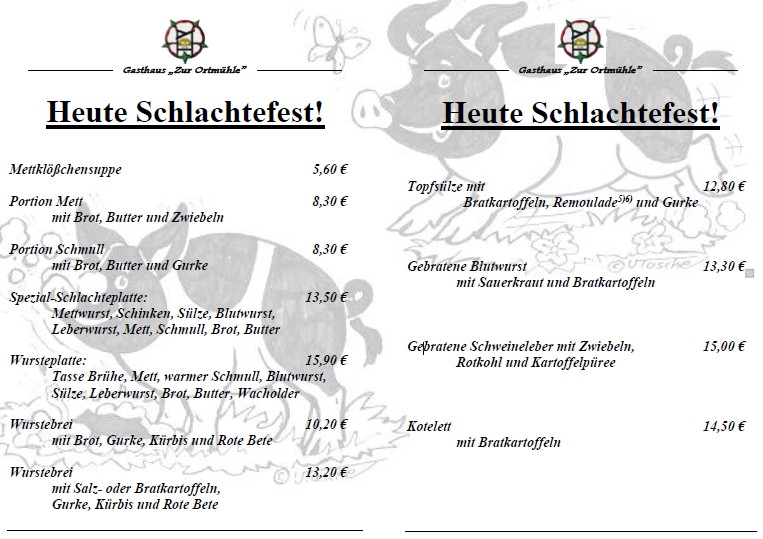 frischer Schmull, Mett, Leberwurst, Sülze, Blutwurst, Wurstebrei, Kotelett, Leber ….